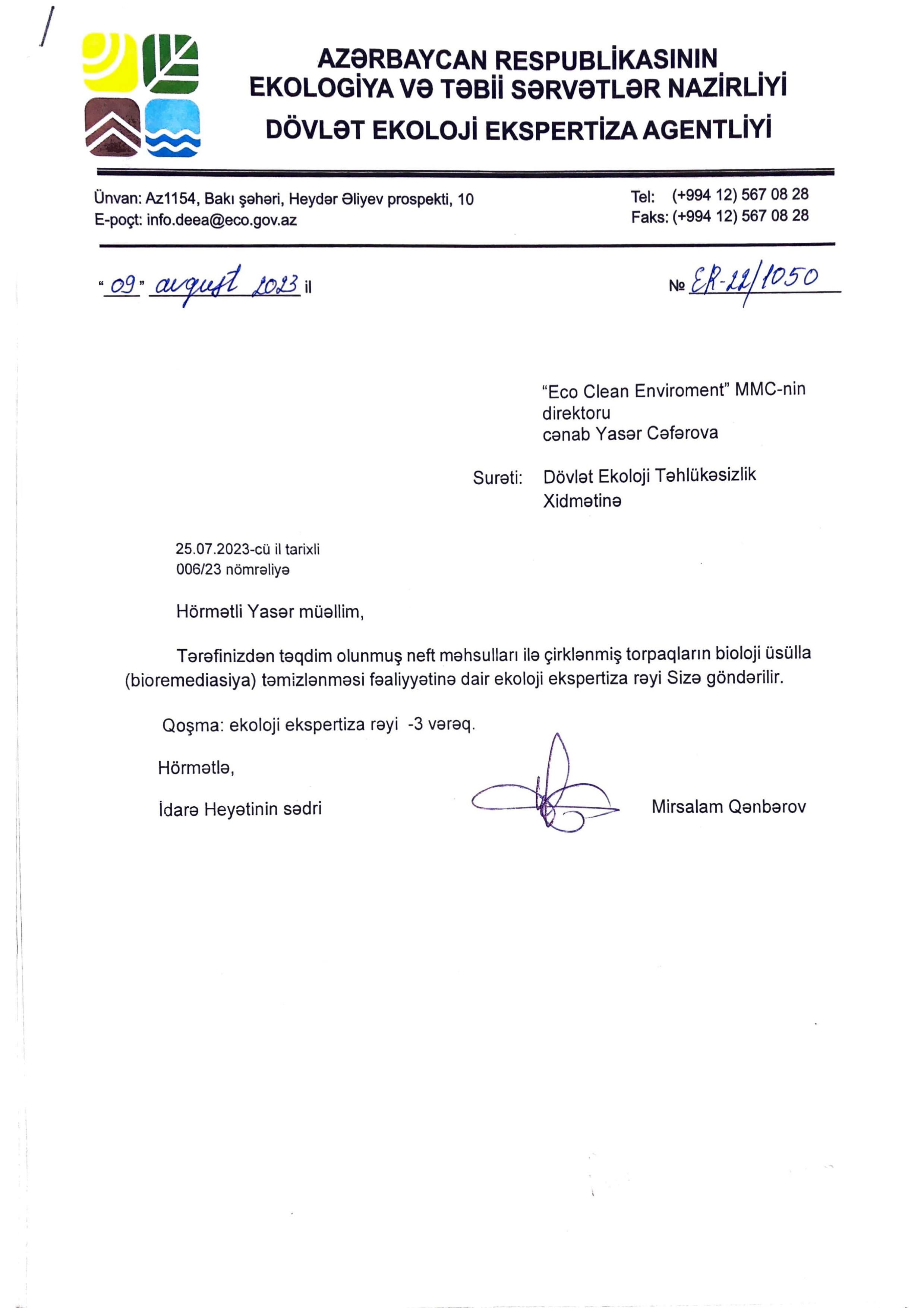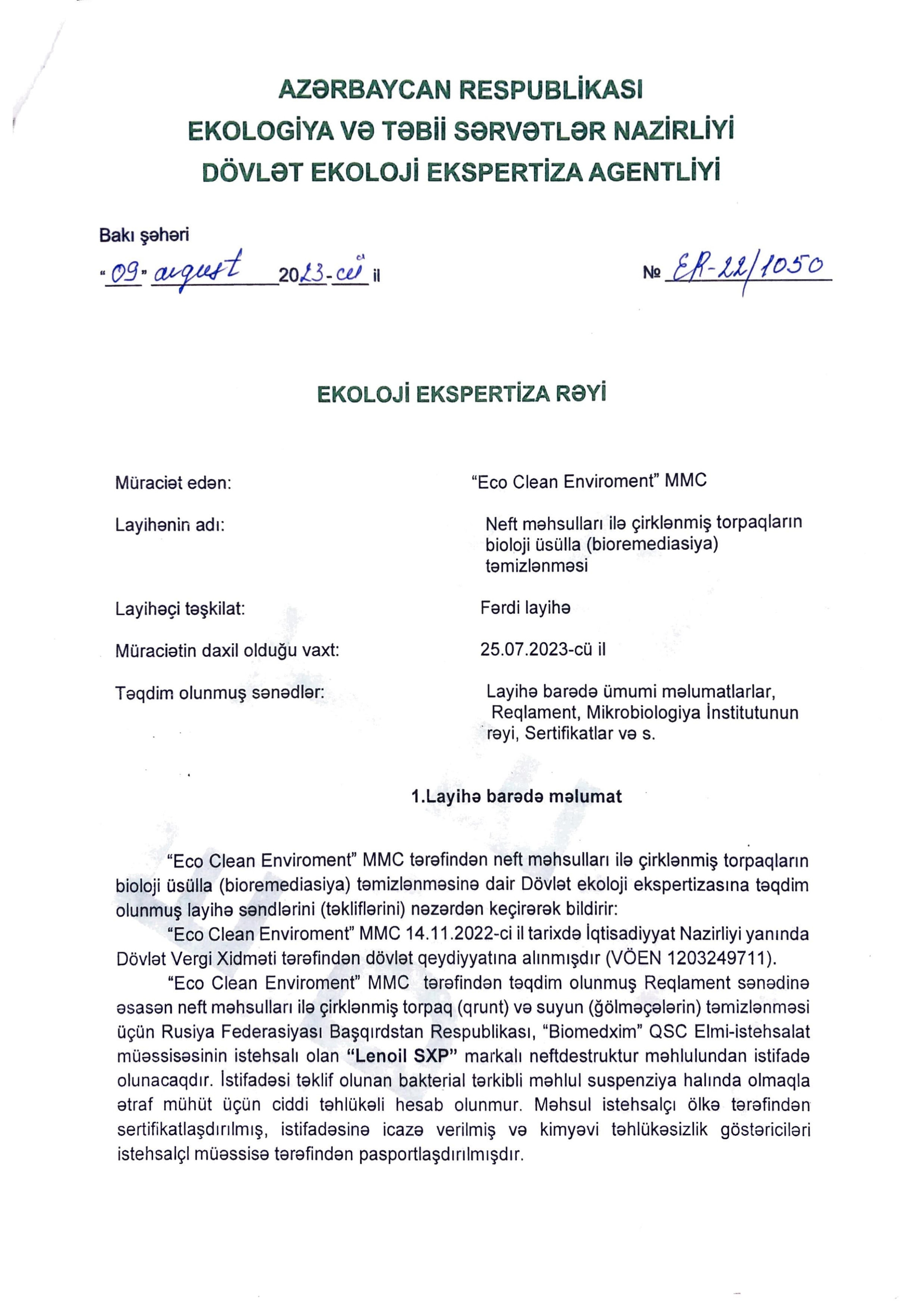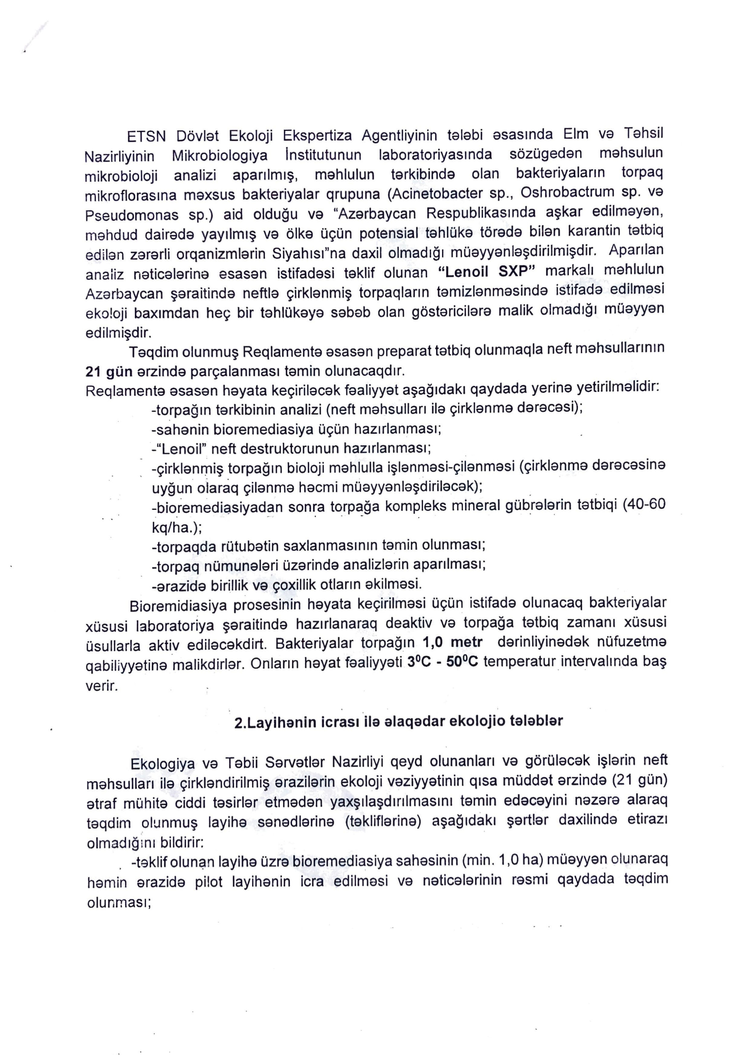 Çirkli neft torpaqlarının təmizlənməsi və onların məhsuldar torpaq kimi yenidən istifadəyə verilməsi.